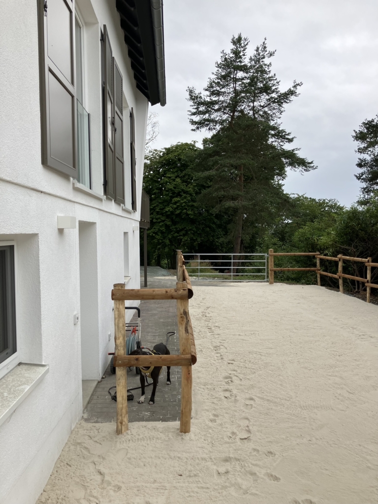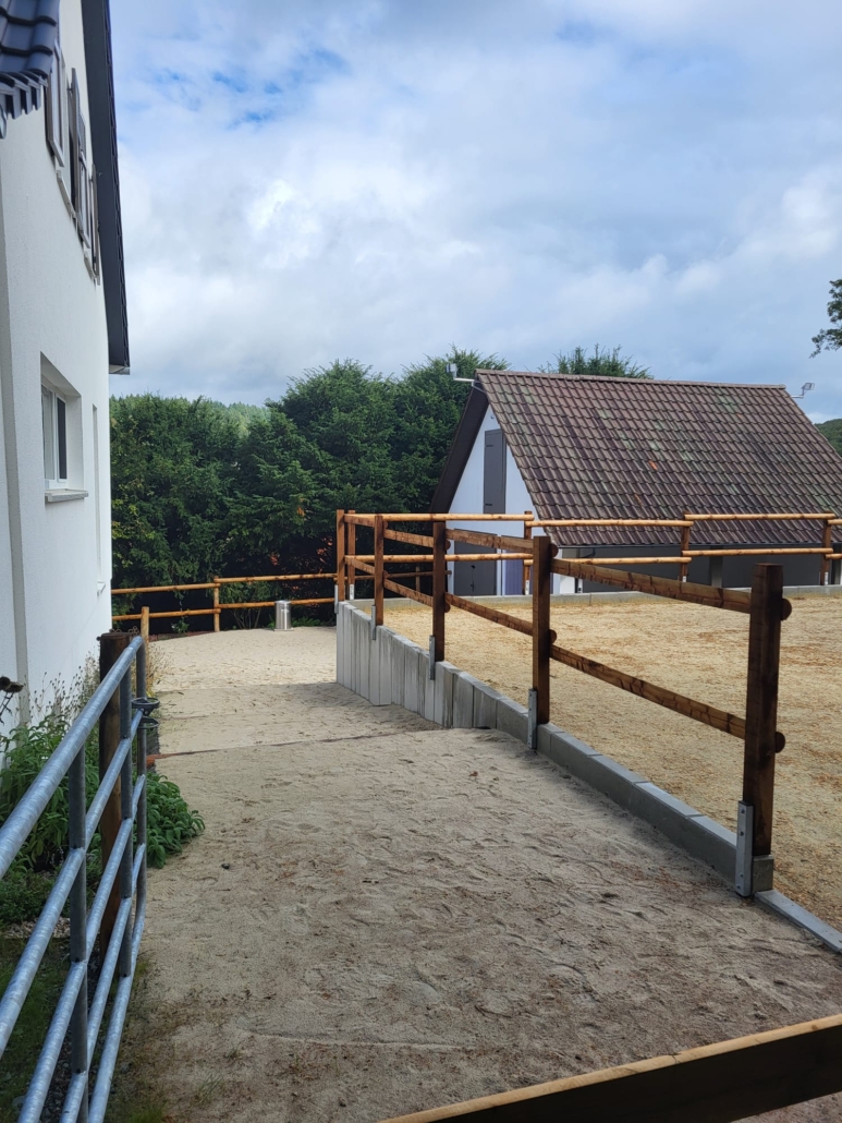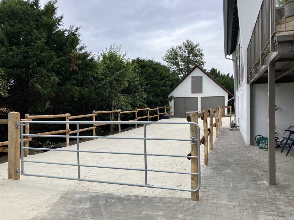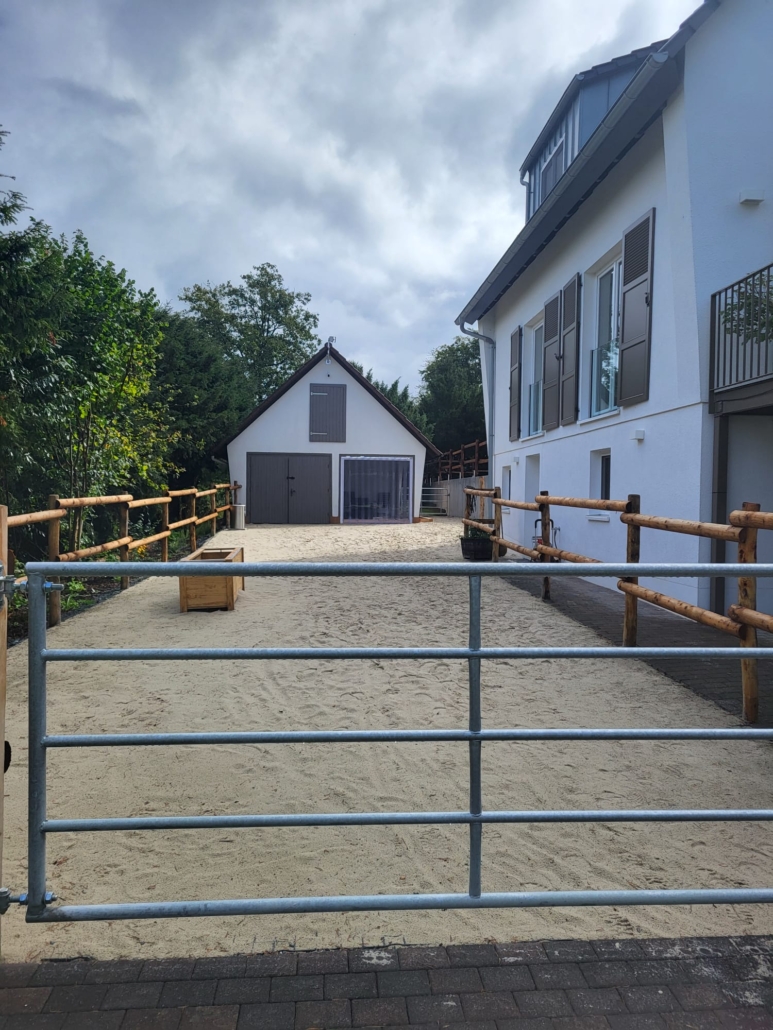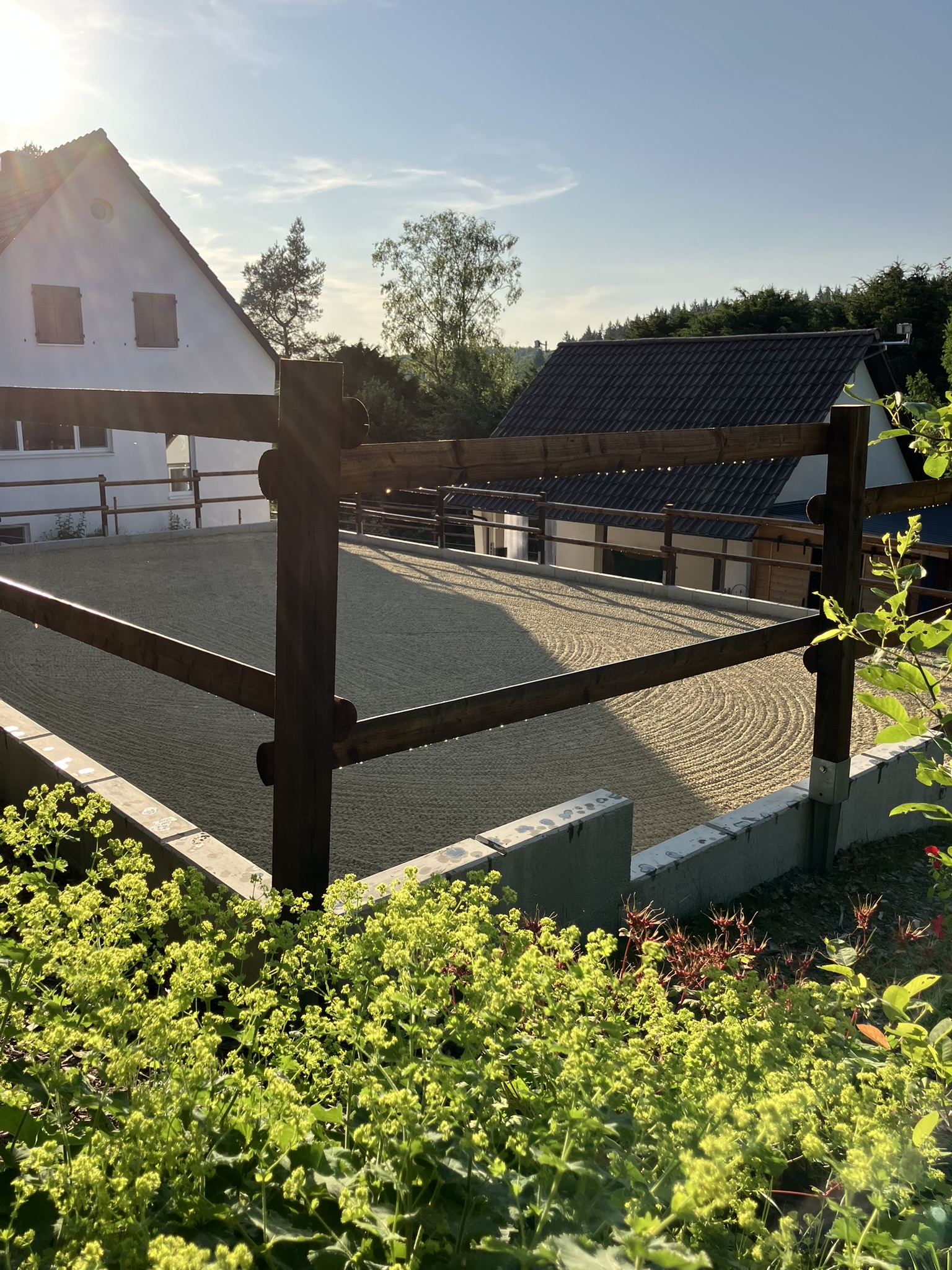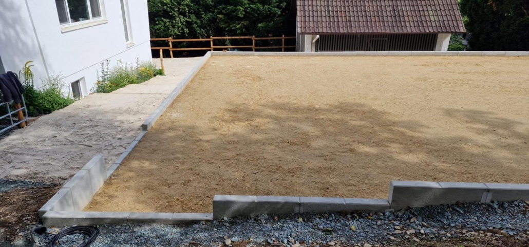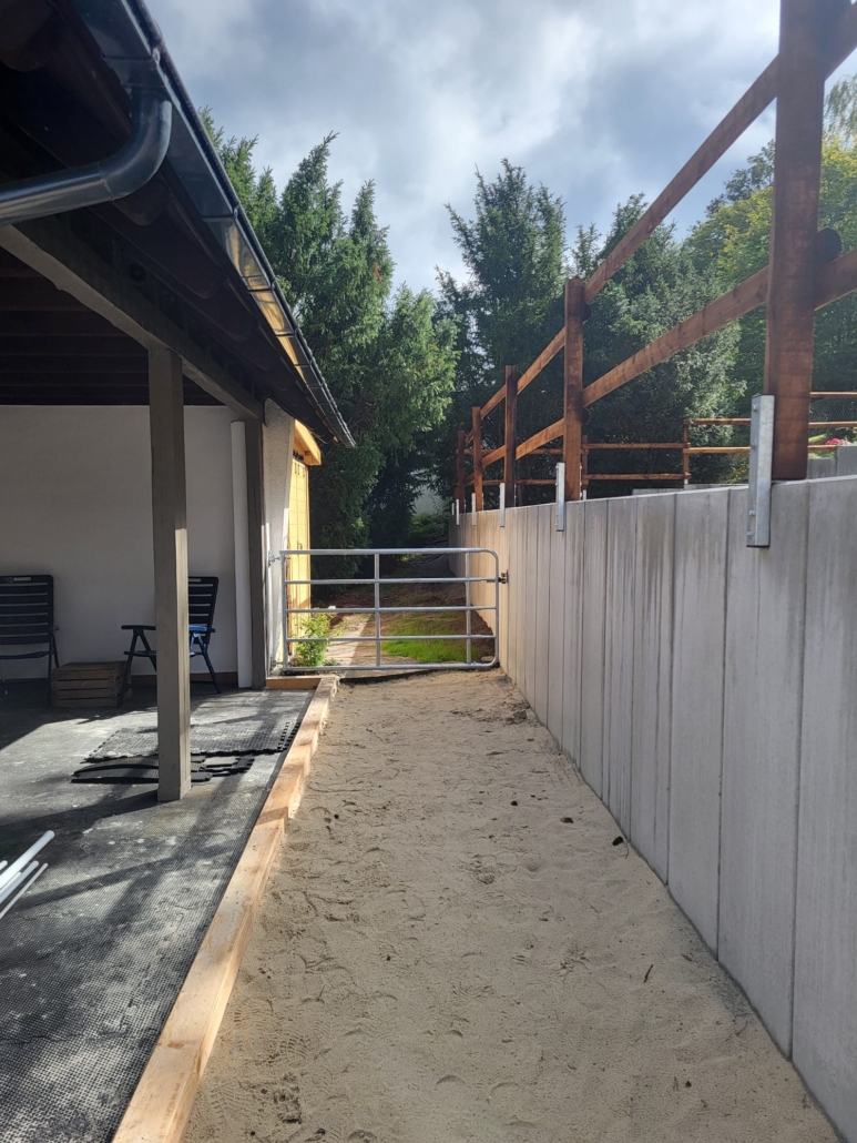 Zu guter Letzt verfüllen wir noch die Padockplatten mit Sand und siehe da, fertig ist ein tolles Paddock neben den eigenen 4 Wänden.