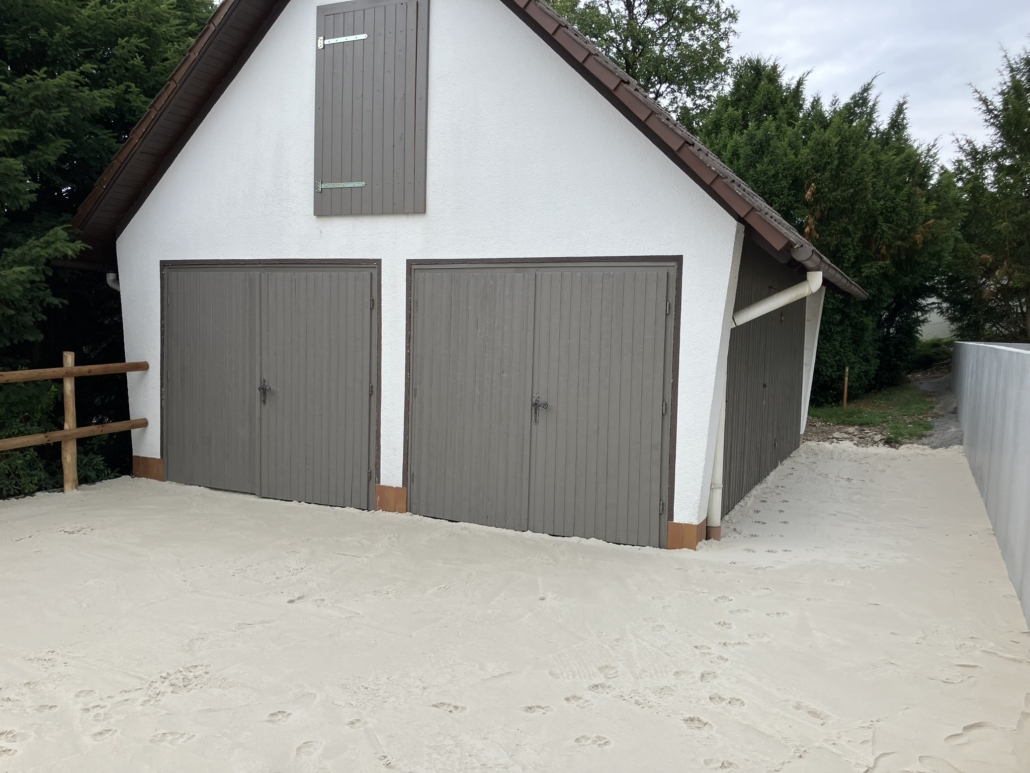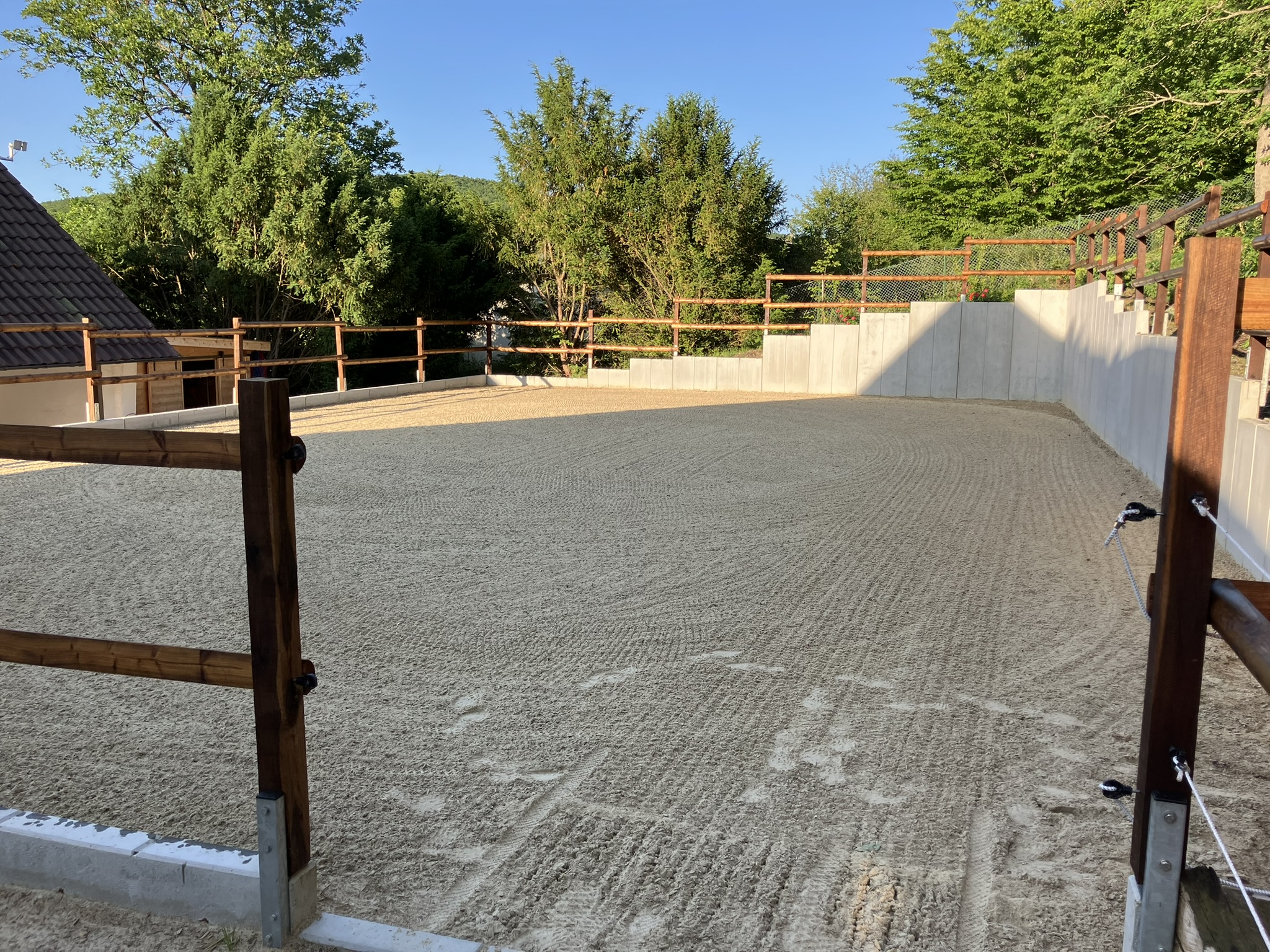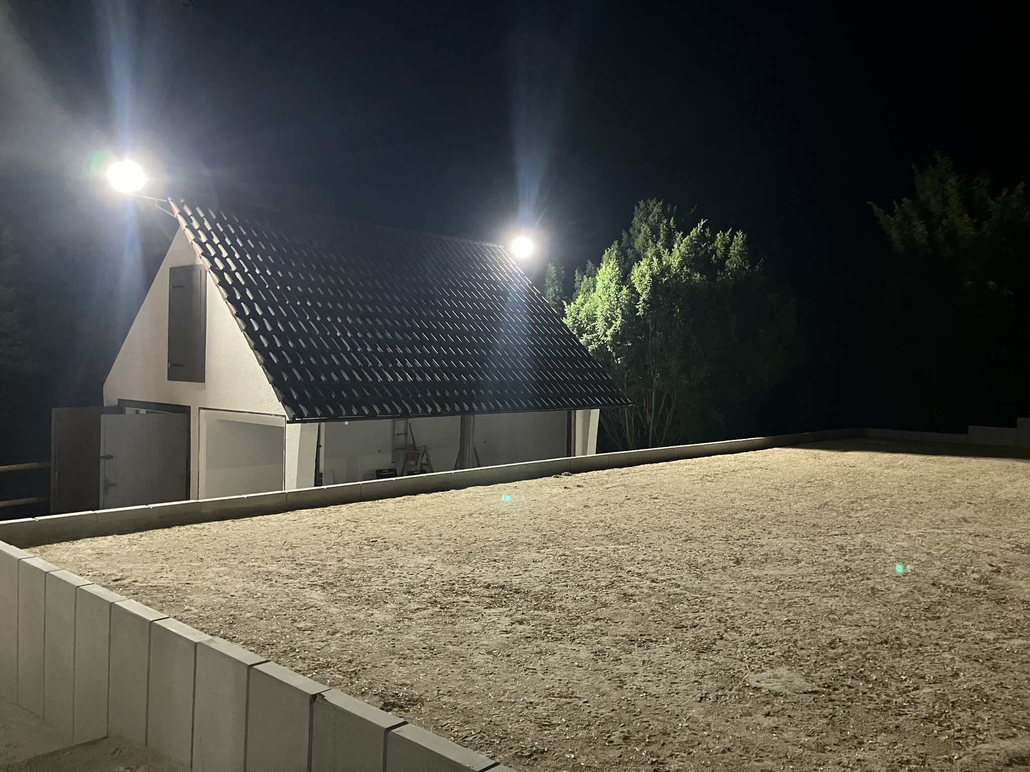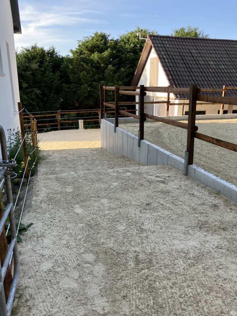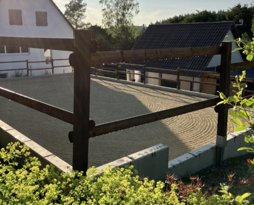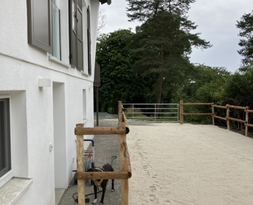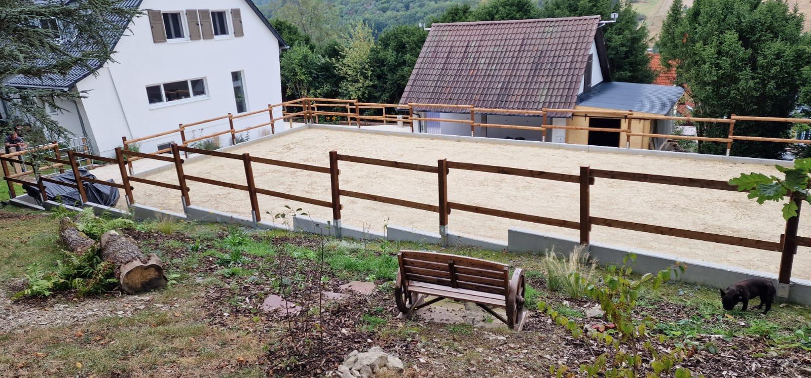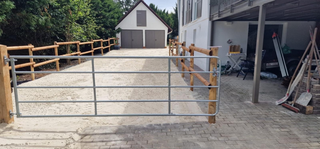 Zu guter Letzt verfüllen wir noch die Padockplatten mit Sand und siehe da, fertig ist ein tolles Paddock neben den eigenen 4 Wänden.