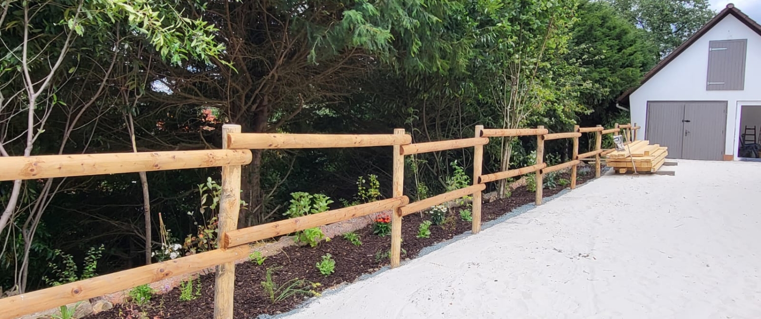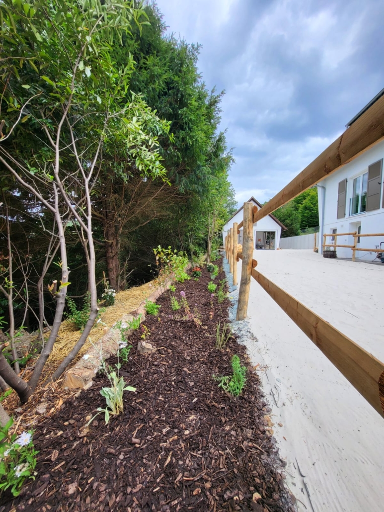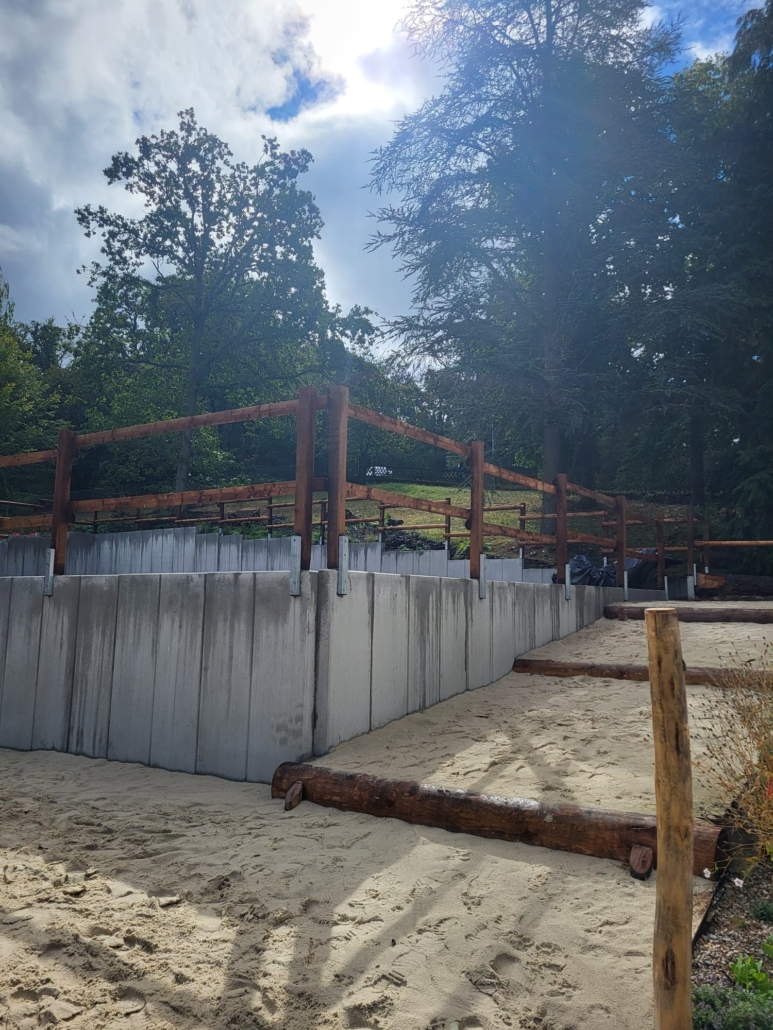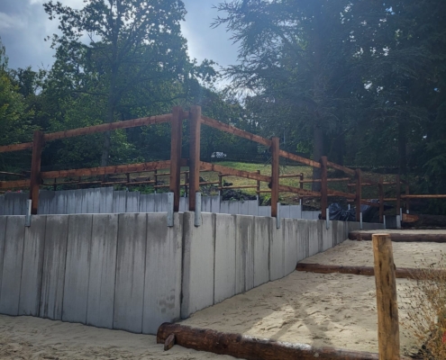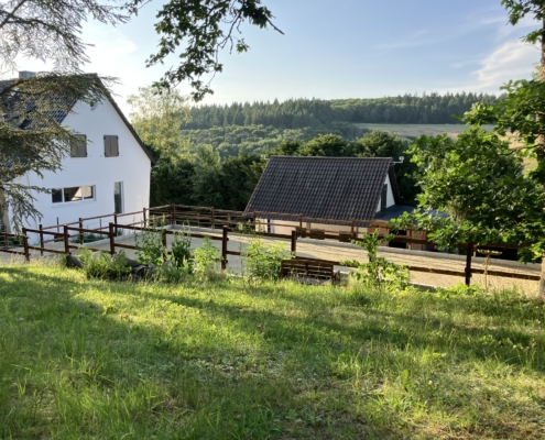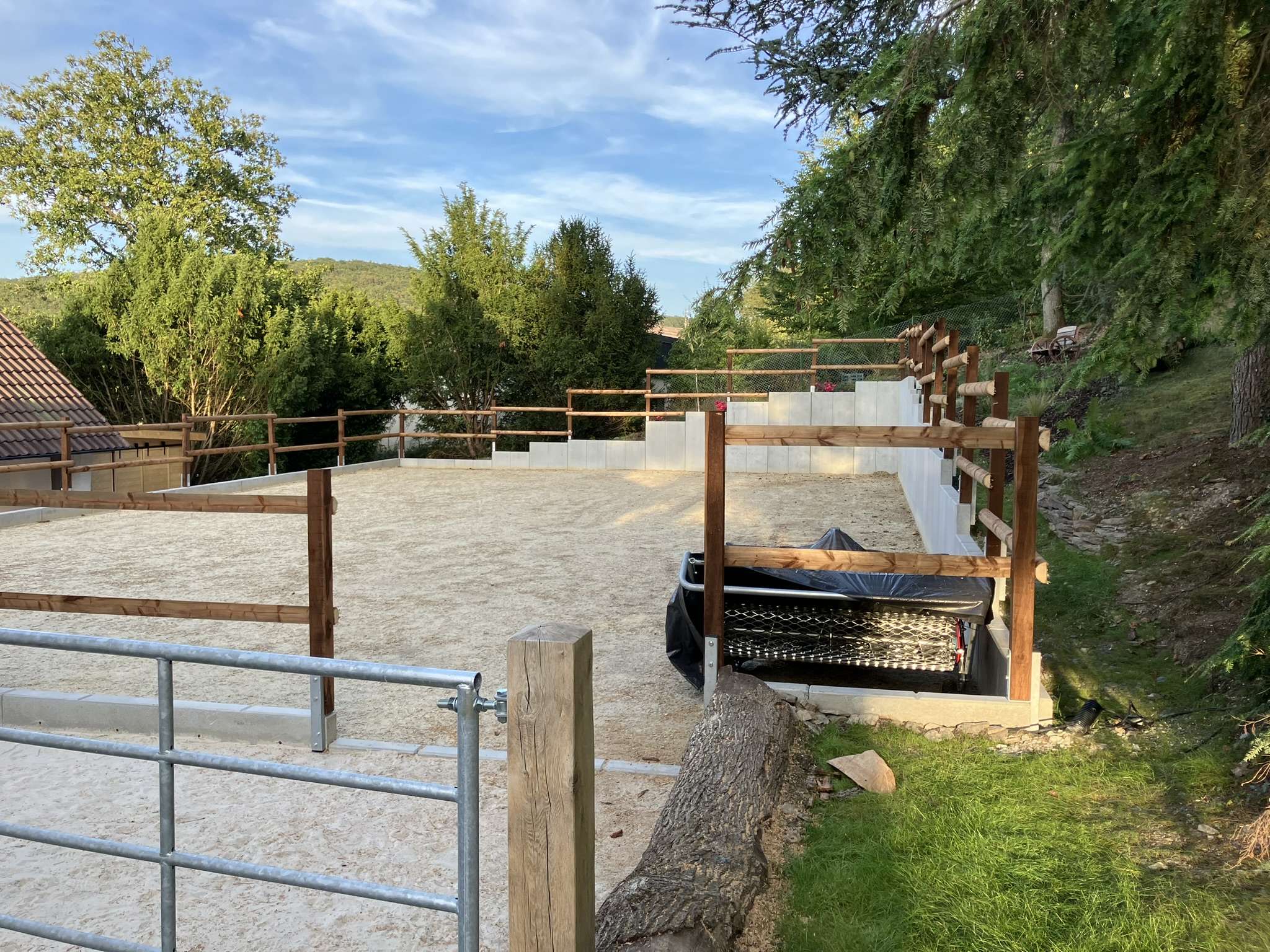 Ein paar Handgriffe hier, ein paar Holzpfähle und Halblatten da und fertig ist ein kleiner aber feiner Bewegungsplatz. Aber wir sind ja noch lang nicht fertig.