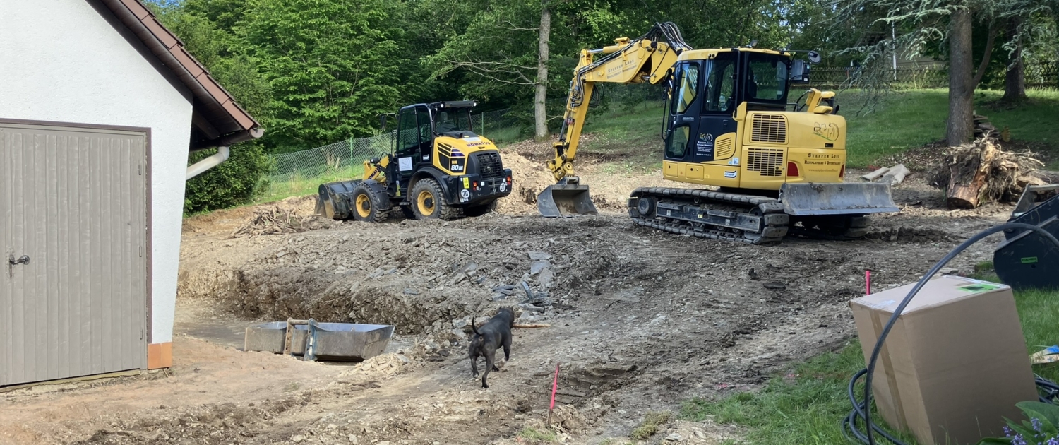 Zuerst stand das Ausschachten an. Hier kann man gut sehen wie wenig Platz für die Maschinen vorhanden war.