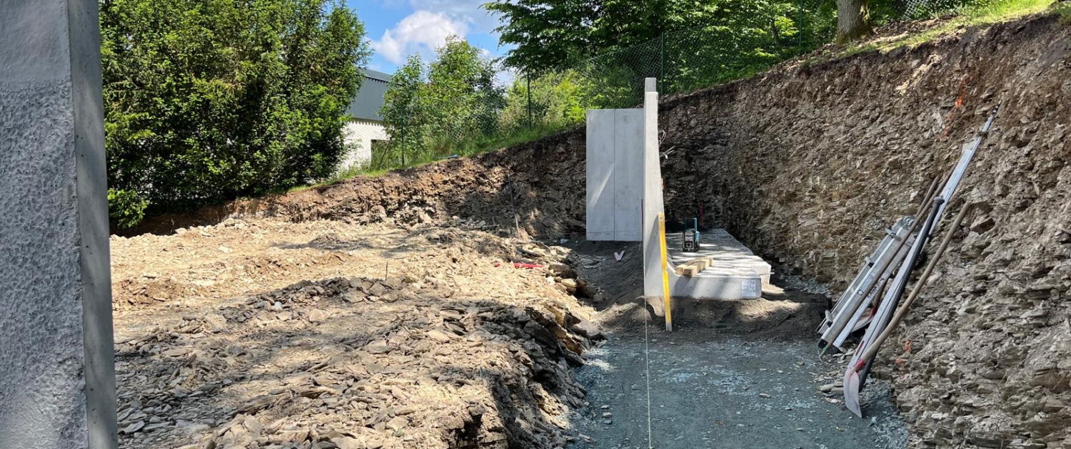 eine Baustelle der besonderen Art, mit Hanglage, hartem Fels und auf engstem Raum.