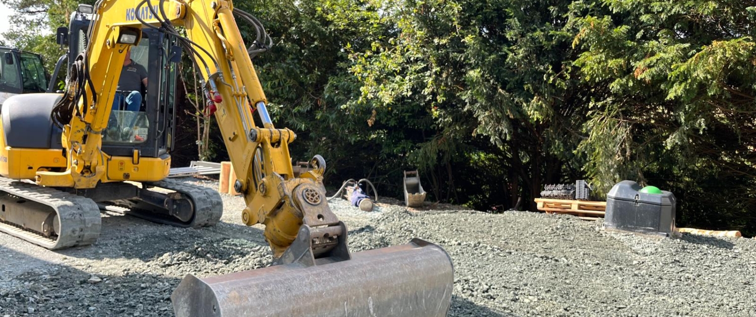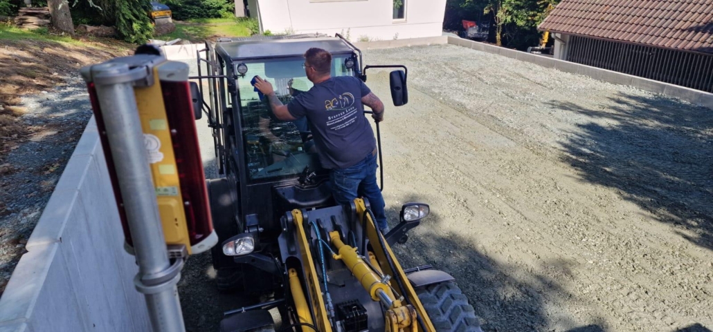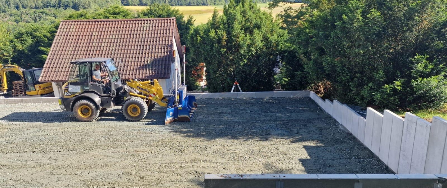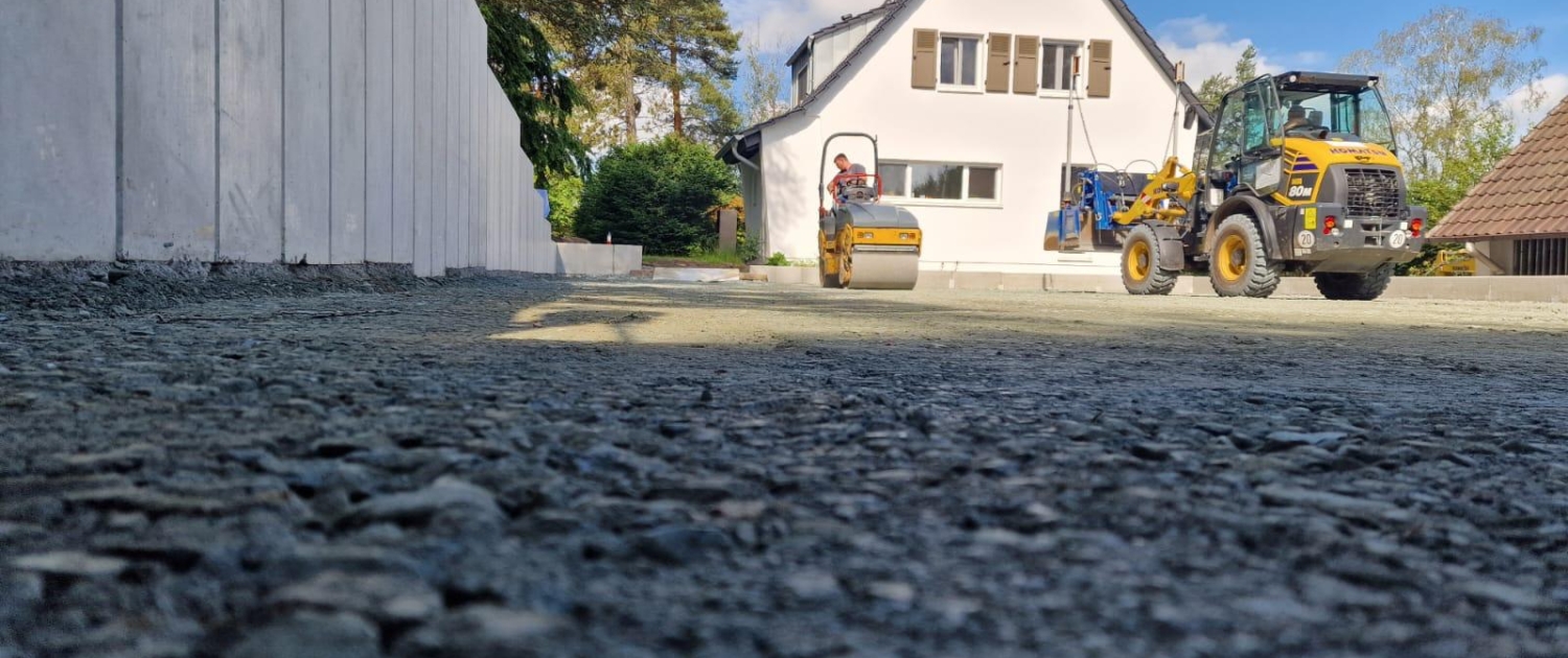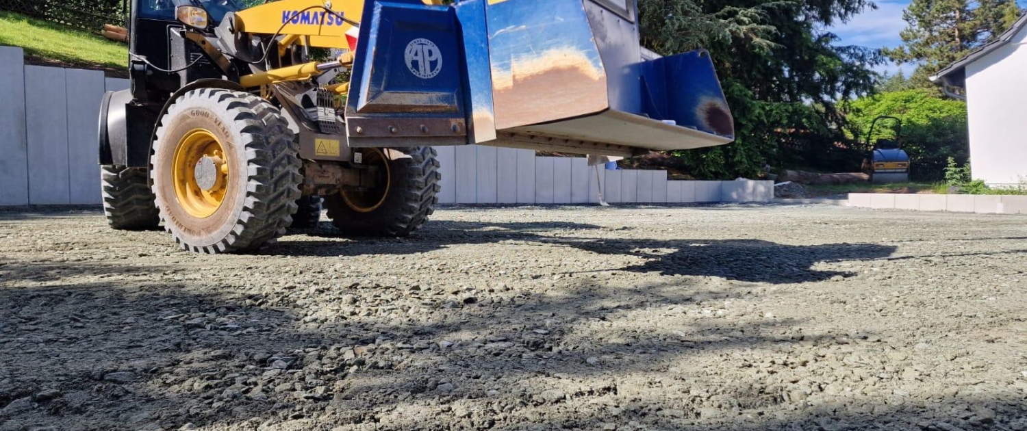 Schotter verteilen und gradern für das perfekte Schotterplanum und Unterbau.